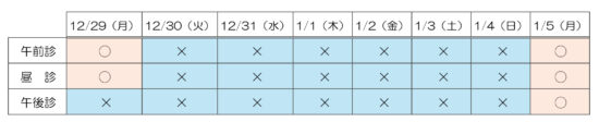 2025年12月29日(月)午後診~2026年1月4日(日)を休診とさせていただきます。